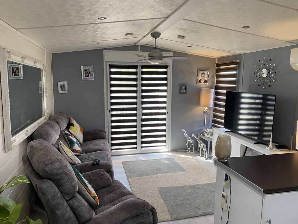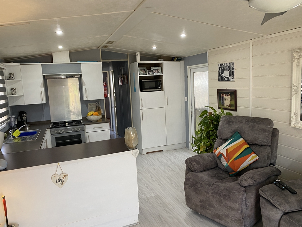 This three-bedroom park home is for sale by the owner, includes enhancements and additions to the original home within the allocated plot on which the home is situated.